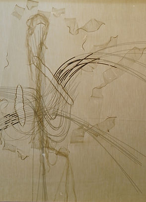 Le Plexiglas comme substance invisible, amorphe, mais sur lequel va pouvoir se poser l’idée, le désir de s’incarner. Tortillons d’ADN des fils de cuivre ; conduction d’énergie où rien n’est encore visible ; juste une transmission électrique porteuse du mystère en puissance de manifestation…